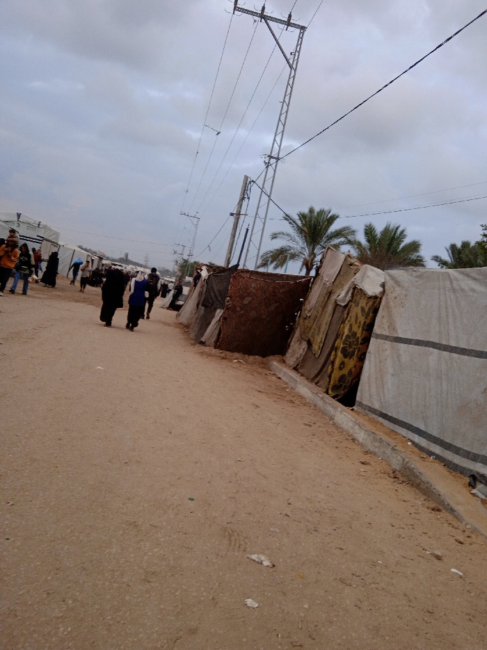 - "The image captures a scene in Khan Yunis, Palestinian Territory, depicting an unpaved road flanked by makeshift structures under an overcast sky" by FM-taMrd2, licensed under CC BY 4.0