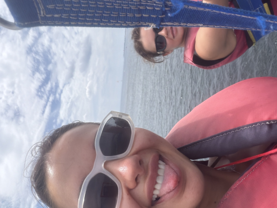 - "Two women wearing sunglasses and orange life vests are posing for a selfie against a backdrop of water and cloudy sky" by FM-JxfQU2, licensed under CC BY 4.0