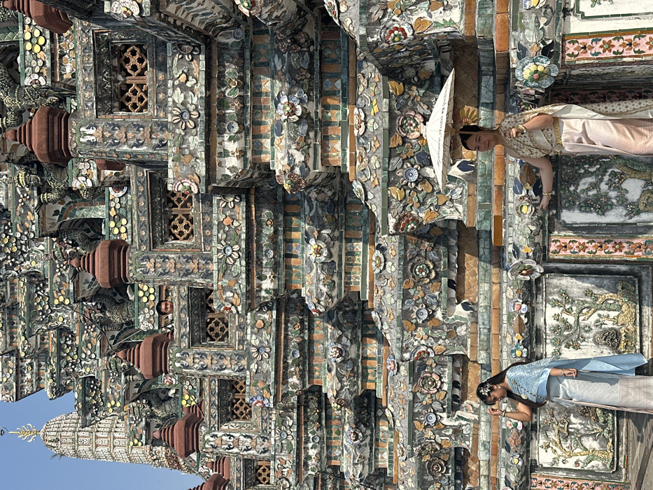 - "The image displays the ornate central prang of Wat Arun Ratchawararam Ratchawararam Woramahawihan in Bangkok, Thailand, under a clear sky" by FM-7mrtA2, licensed under CC BY 4.0