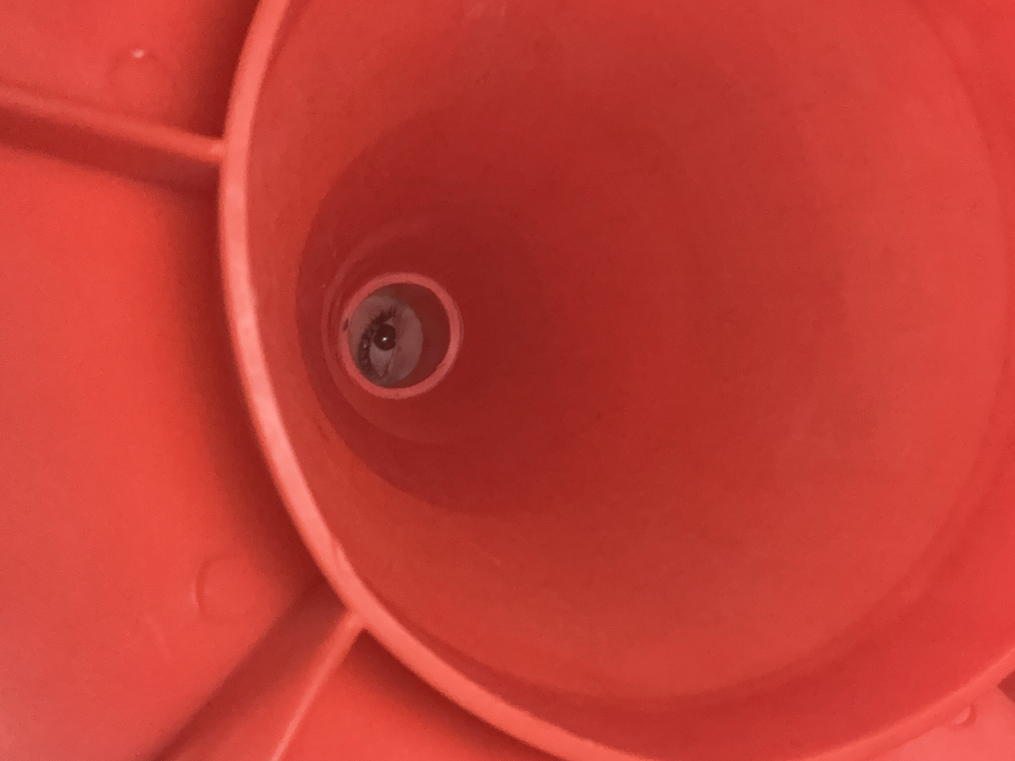 - "The image displays the interior of a vivid red, cylindrical or conical object, likely constructed from plastic, in Lupanovo, Russia" by FM-VJm8n1, licensed under CC BY 4.0