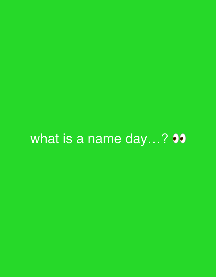 - "A solid green background displays the text "what is a name day" by FM-SHEMl1, licensed under CC BY 4.0