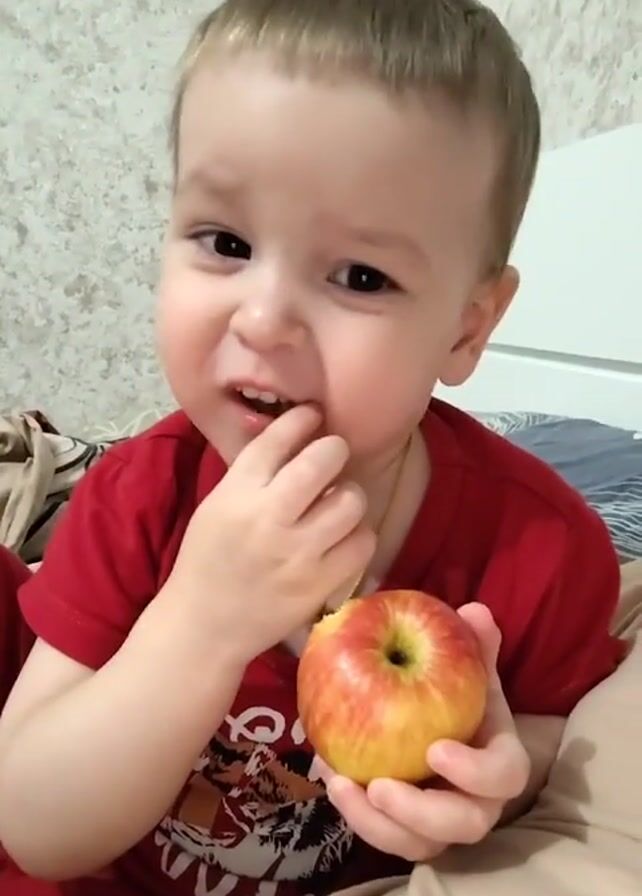 - "A young child sits on a bed, holding and eating an apple" by FM-9xtHL2, licensed under CC BY 4.0