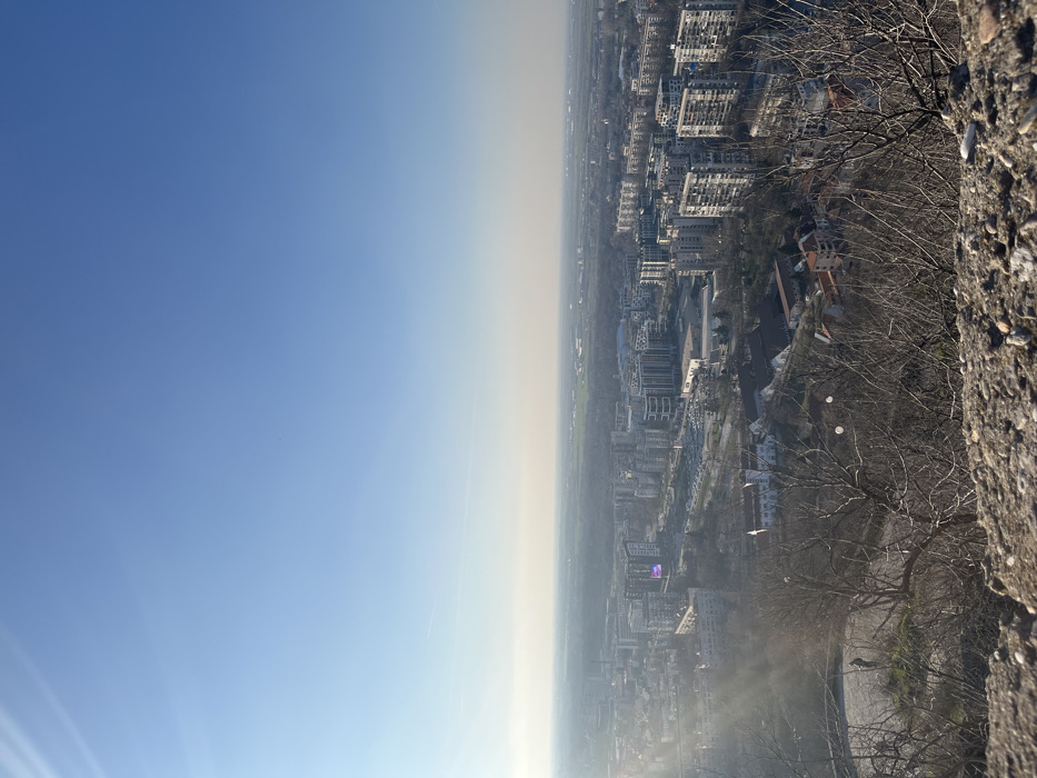 - "The image captures an elevated, panoramic view of Plovdiv, Bulgaria, under a clear, bright blue sky with a visible sun and lens flare originating from the upper left" by FM-4Olqq2, licensed under CC BY 4.0
