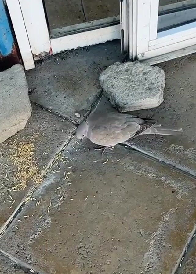 - "A medium shot shows a Eurasian collared dove standing on a gray tiled surface" by FM-ET79A2, licensed under CC BY 4.0
