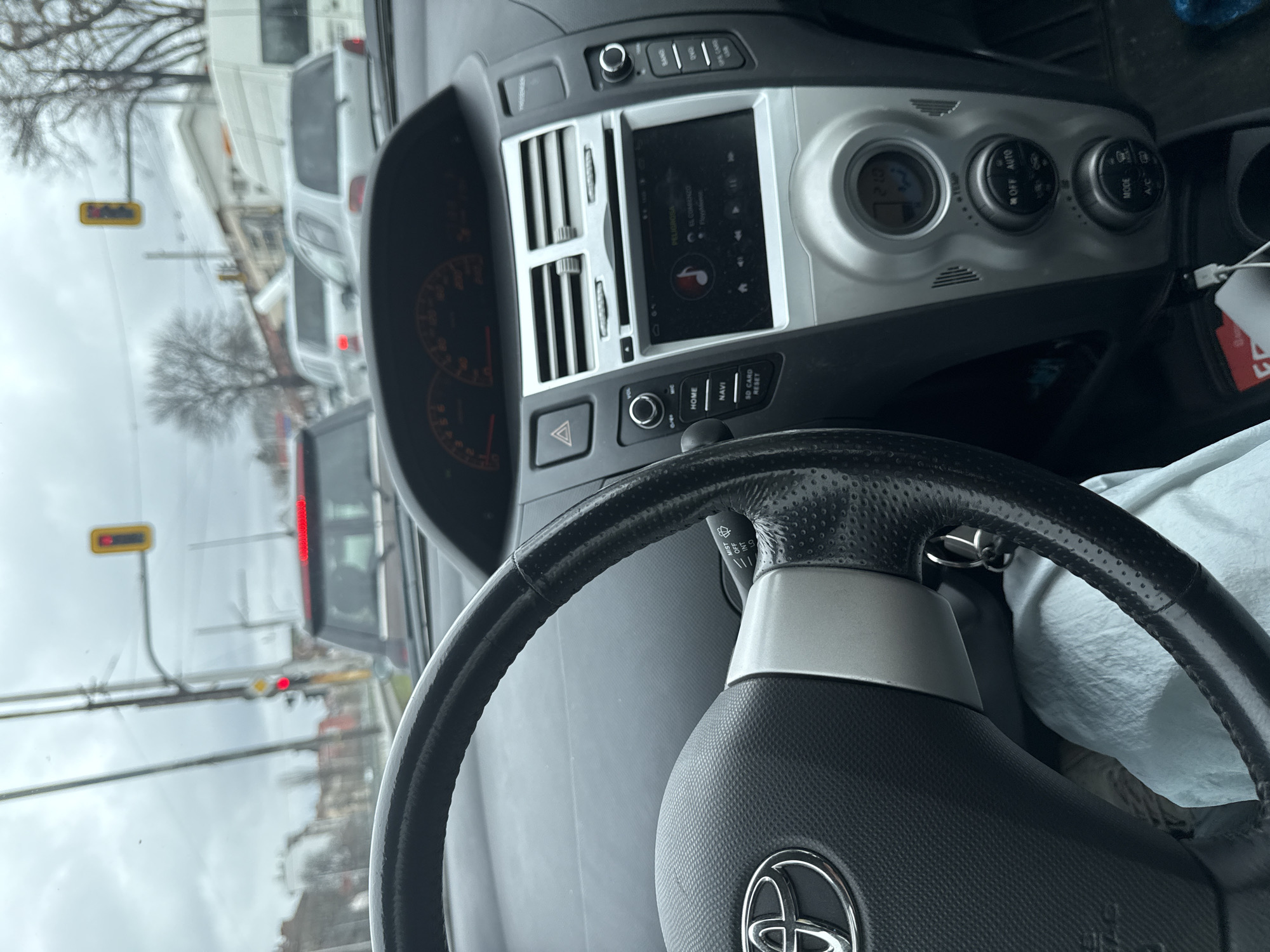 The image depicts the interior of a Toyota Yaris car