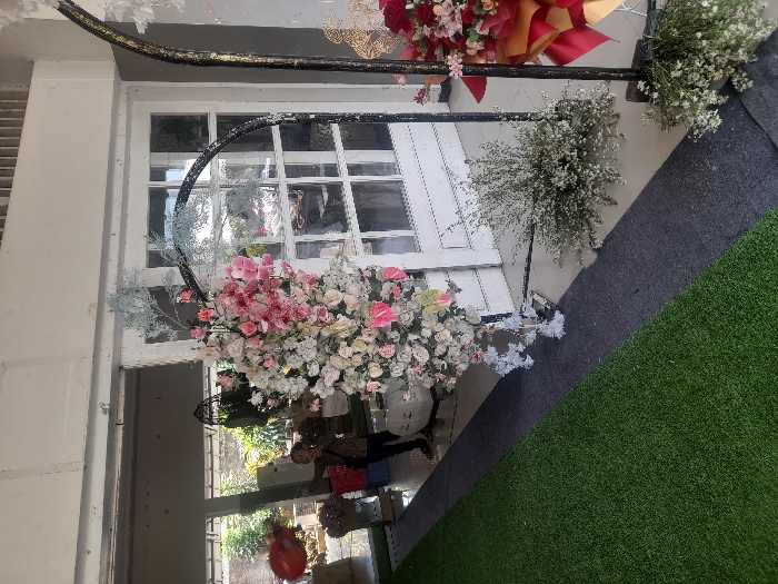 - "The scene depicts an indoor event setup in Kecamatan Pati, Indonesia, featuring floral decorations and distinct flooring" by FM-p15wb2, licensed under CC BY 4.0