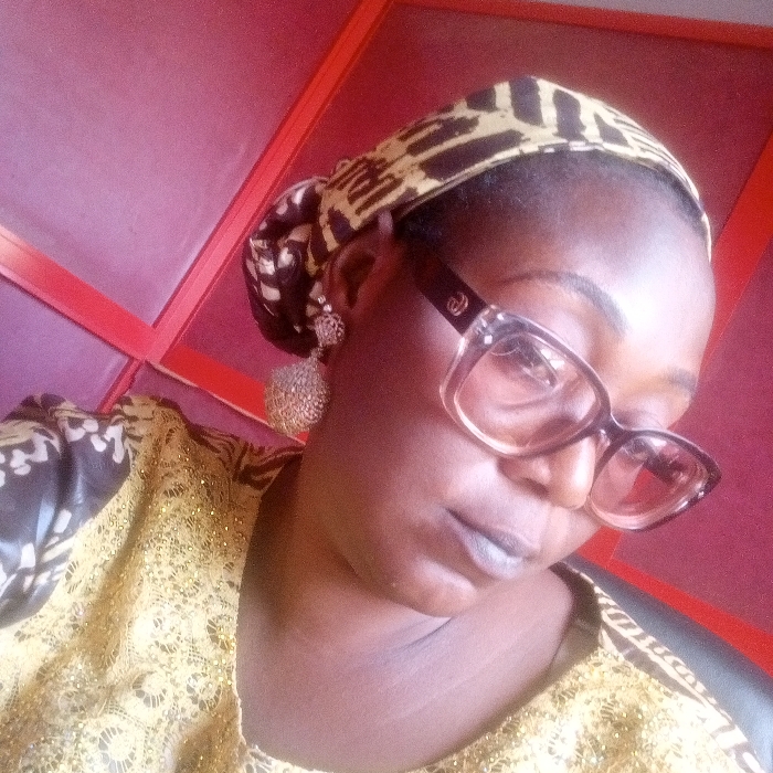 The image displays a close-up portrait of an adult female, situated in an indoor environment in Kaduna, Nigeria