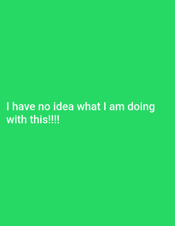 The image is a solid green background with the text "I have no idea what I am doing with this!!!" in white text