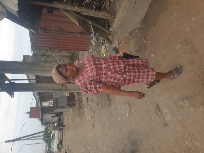 A female walks across an unpaved dirt road in Umuode, Nigeria, under an overcast sky
