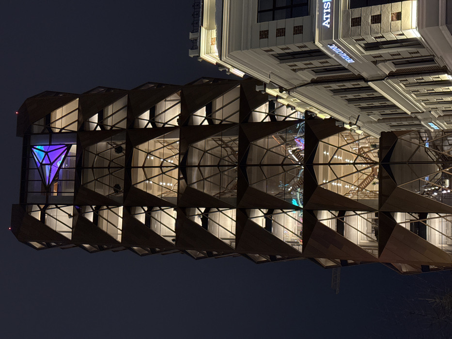 - "An abstract building facade at night features repeating geometric patterns" by FM-5qZTW2, licensed under CC BY 4.0