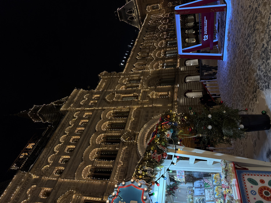 - "The image displays a winter night scene in Red Square, Moscow, Russia, featuring the extensively illuminated GUM (State Department Store) building" by FM-yoJ1x1, licensed under CC BY 4.0