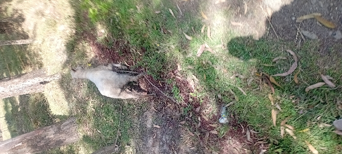 - "A light-colored llama lies dead on the ground, its body stretched out amidst green grass, brown leaves, and bare dirt" by FM-e7yqA2, licensed under CC BY 4.0