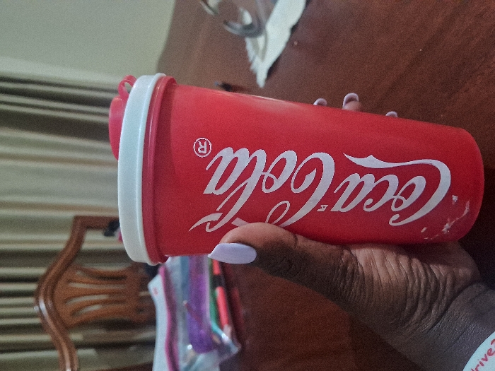 - "An individual with dark skin and light purple manicured fingernails grasps a red Coca-Cola branded travel mug" by FM-UrRWw2, licensed under CC BY 4.0