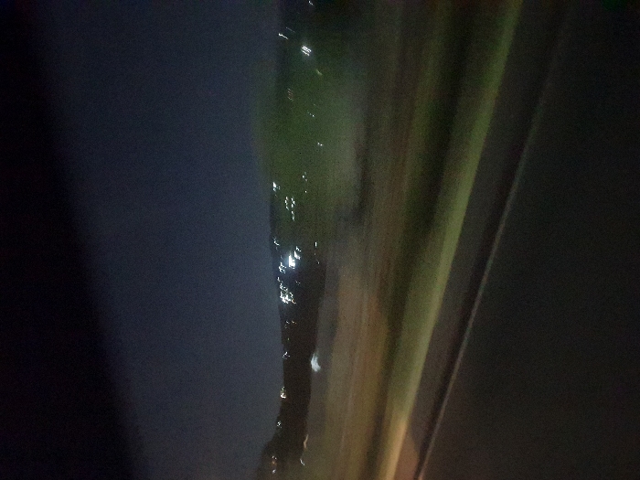 An abstract, close-up image displays a dark background on the left contrasting with a blurred, vertical band on the right. This band features a mix of light and dark tones, suggesting textures or layers. A central area shows a concentrated streak with reflective points, possibly liquid or a glossy surface. The overall composition lacks clarity due to the blur and close proximity.