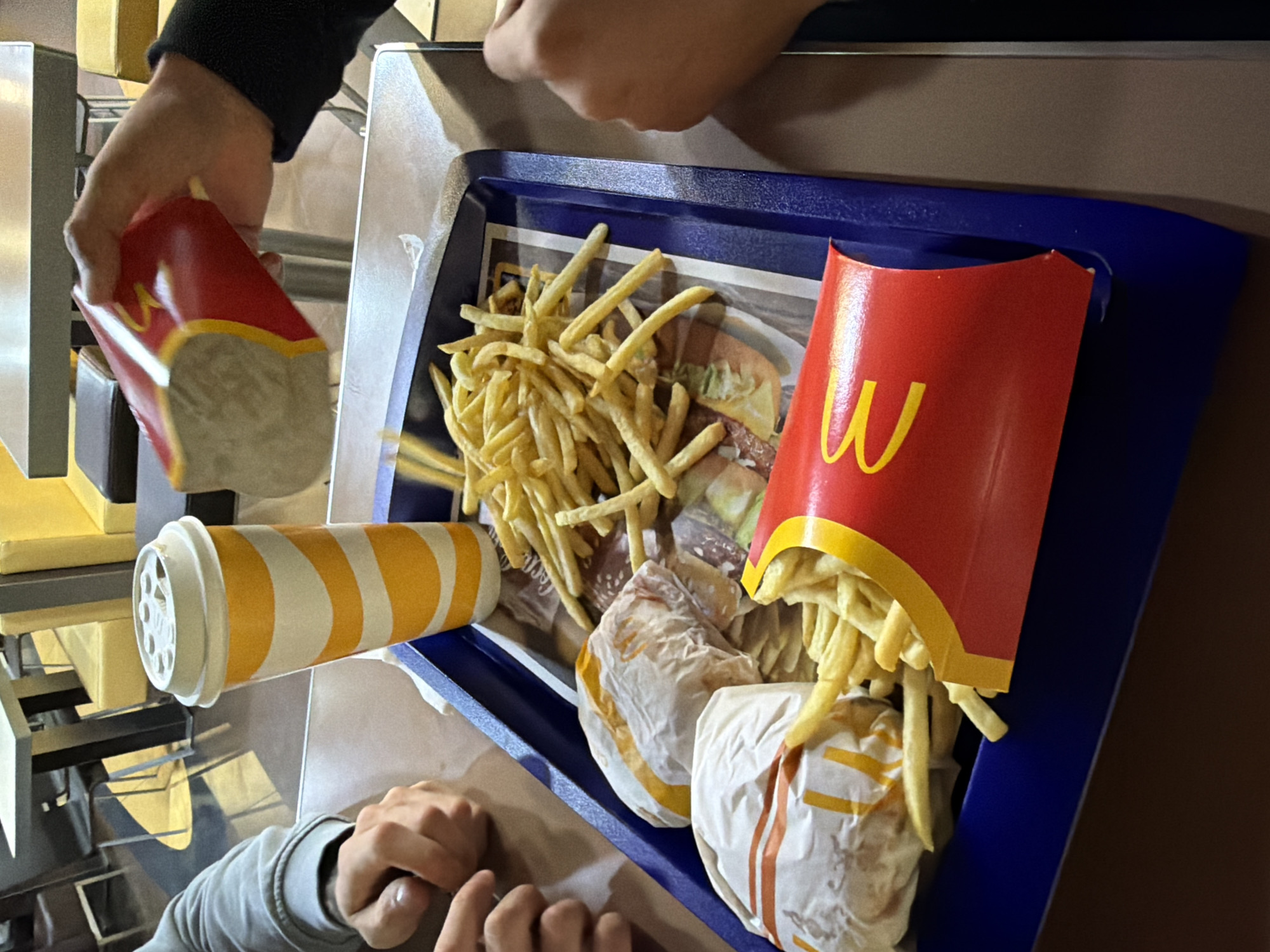 A tray of McDonald's food is viewed from above