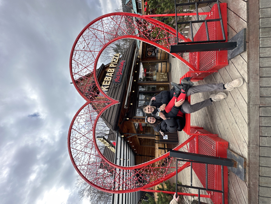 - "Two individuals, one female and one male, are seated on a red bench within a large, red, heart-shaped metal frame decorated with lights, located on a wooden deck in Zakopane, Poland" by FM-cq4Tg2, licensed under CC BY 4.0