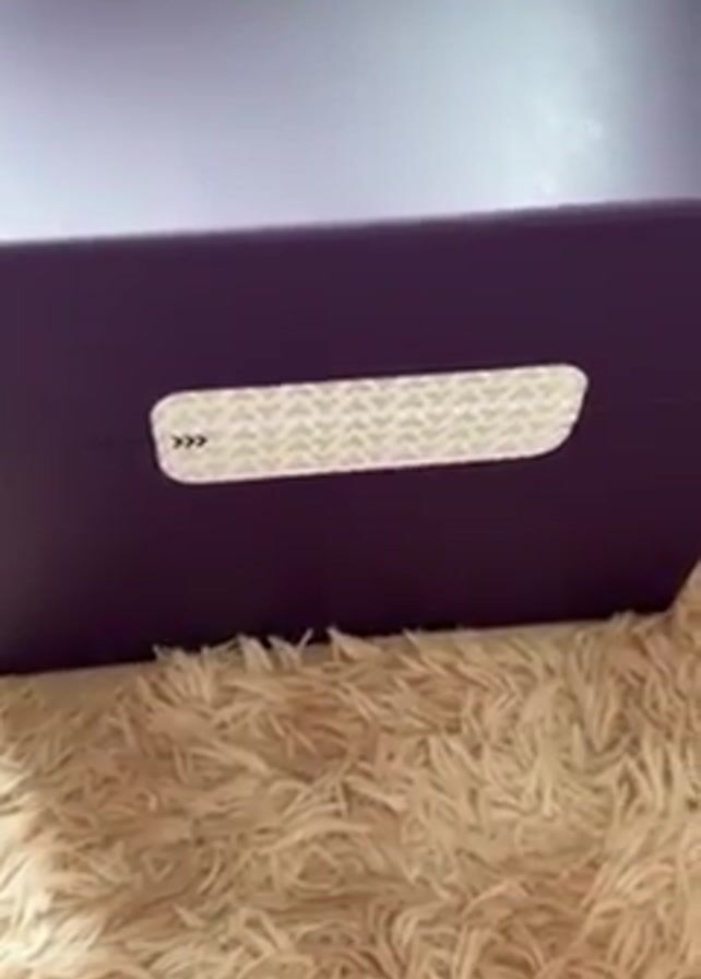 person opening a purple box