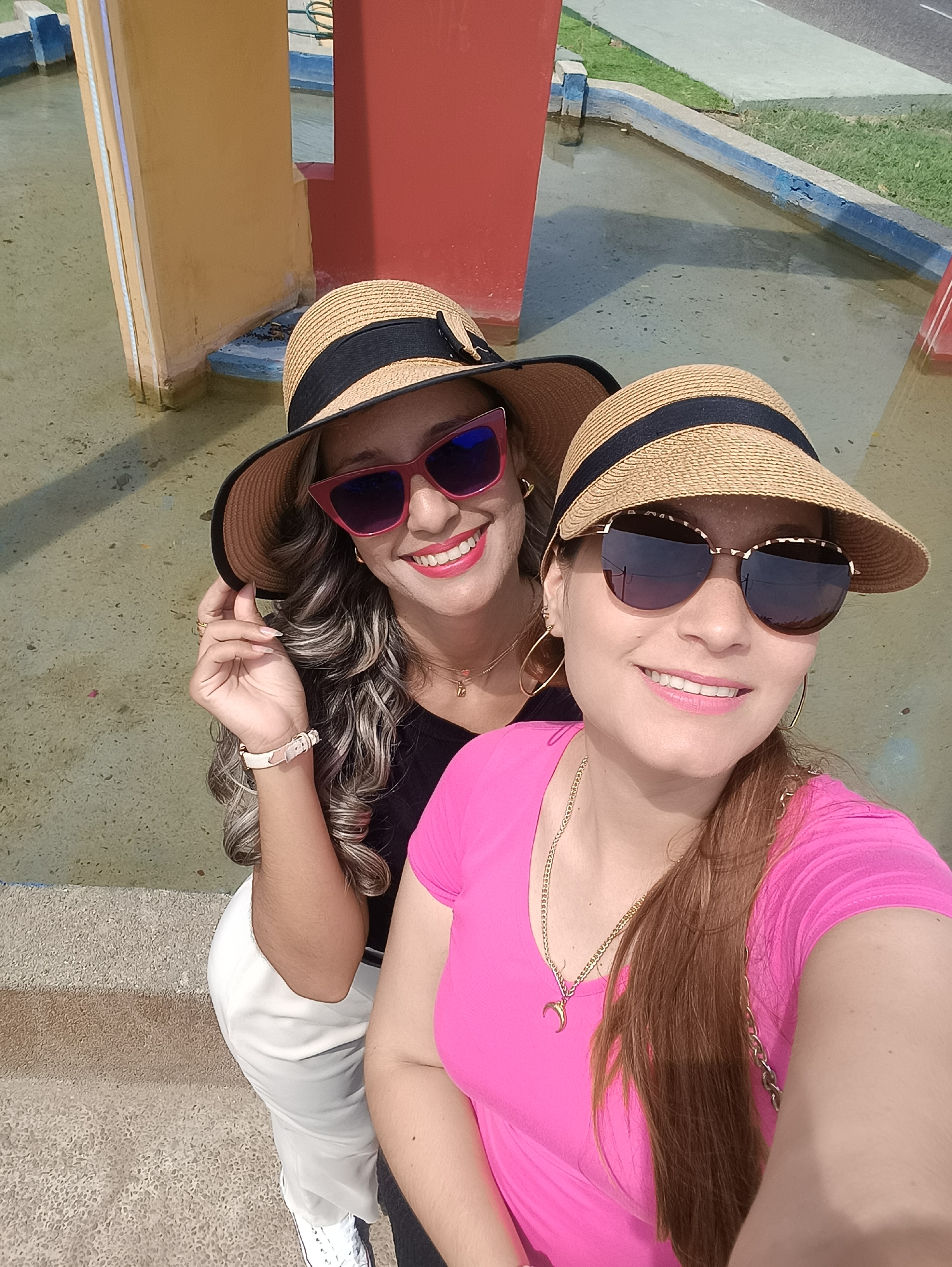 Two adult females are depicted in a selfie-style photograph taken outdoors in La Victoria, Venezuela
