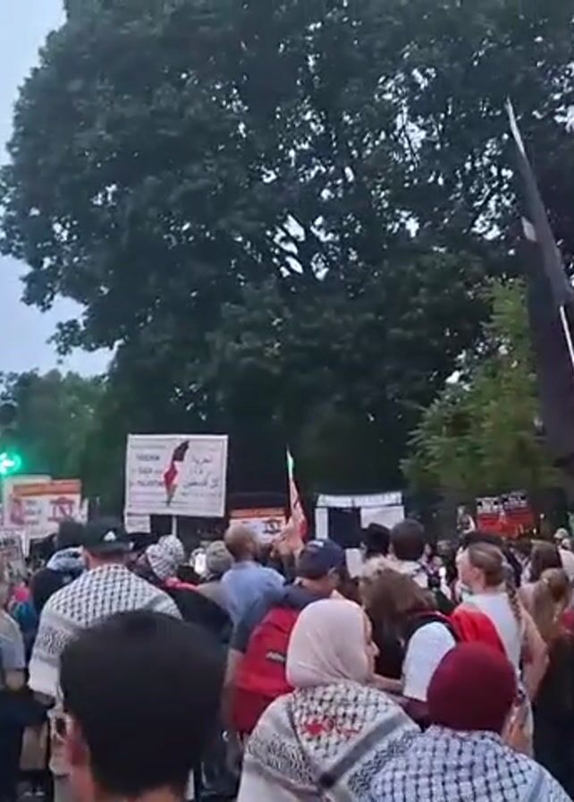 - "A crowd of people is gathered, many holding Palestinian flags and banners, in what appears to be a demonstration or protest" by FM-cHbum2, licensed under CC BY 4.0