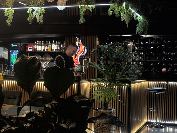 - "The image depicts the interior of a modern bar or restaurant in Bratislava, Slovakia, during evening hours" by FM-gOnIQ2, licensed under CC BY 4.0
