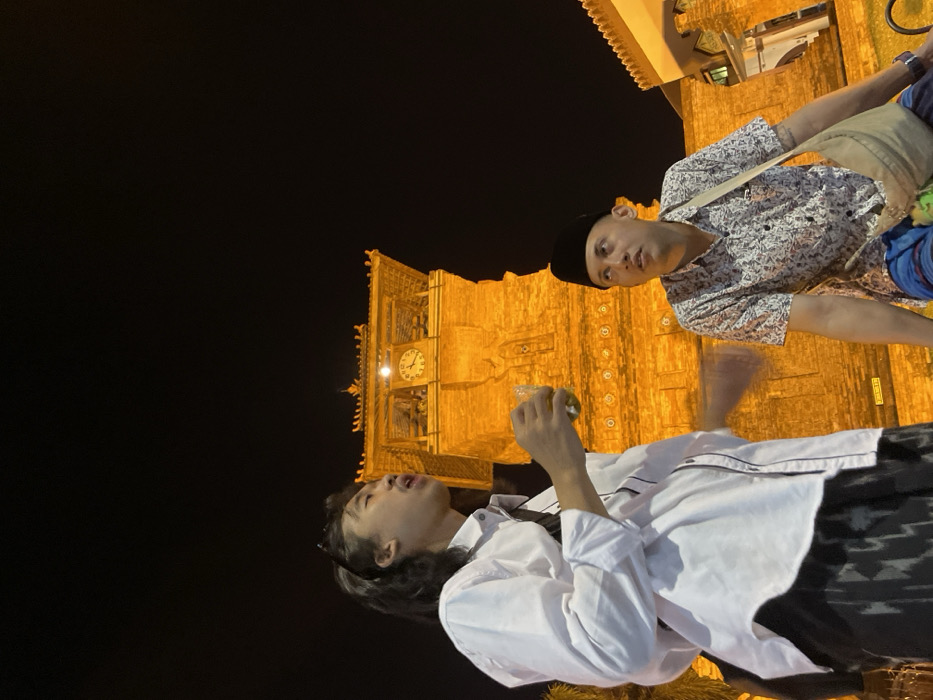 - "An outdoor nighttime scene in Kauman, Indonesia, features two men positioned in front of a prominently illuminated brick or stone clock tower" by FM-12UHC3, licensed under CC BY 4.0