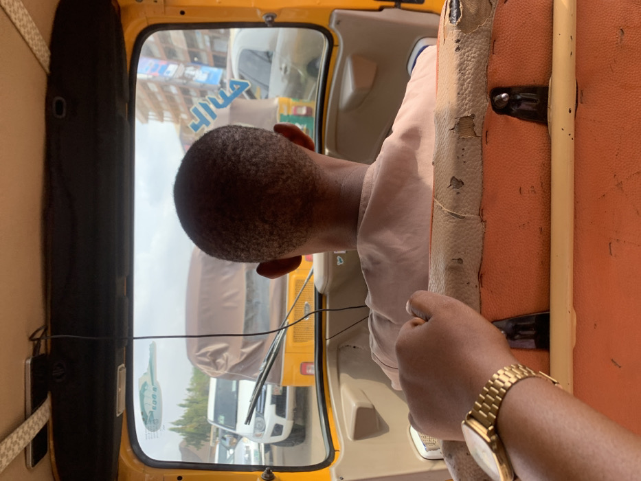 - "The image depicts an interior view from the passenger seat of a yellow commercial tricycle (keke napep) in Abuja, Nigeria, looking forward through the front windshield" by FM-O5WCg2, licensed under CC BY 4.0