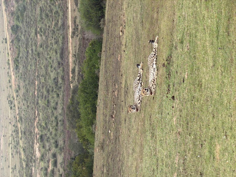 - "The image displays two adult cheetahs (Acinonyx jubatus) resting in an open, vegetated landscape located in Hessequa Nu, South Africa" by FM-tYDL83, licensed under CC BY 4.0