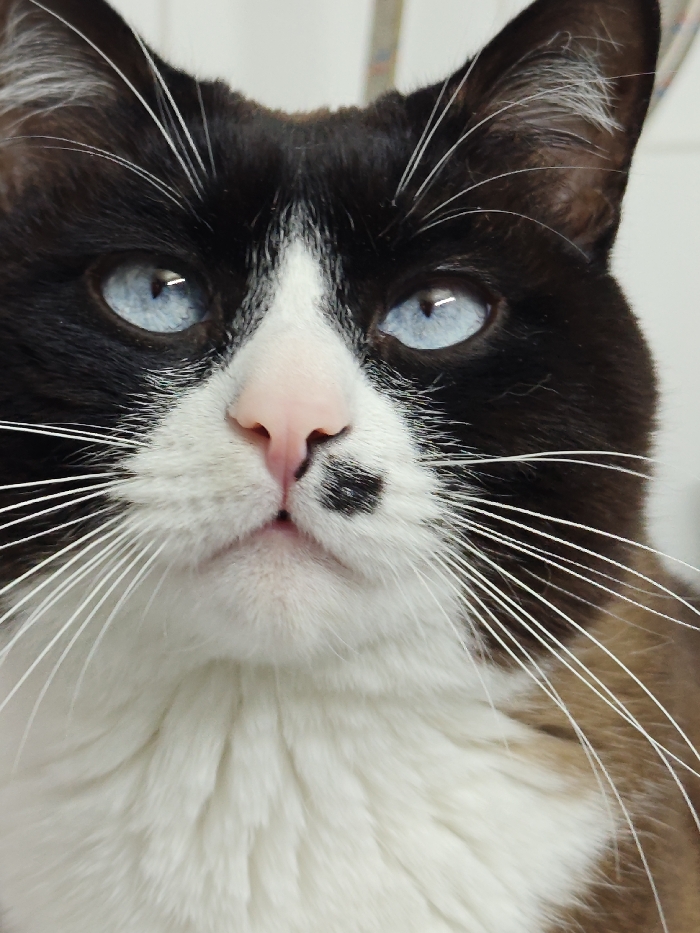 - "A close-up image showcases a Snowshoe cat with striking blue eyes" by FM-eMutn2, licensed under CC BY 4.0
