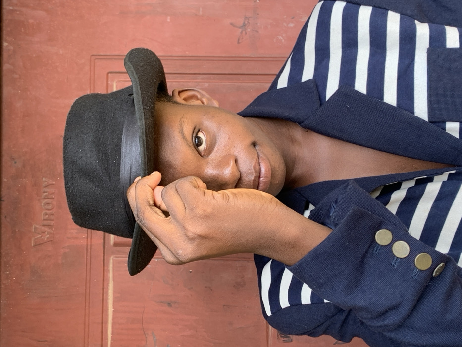 A dark-skinned individual, appearing to be male, is captured in a medium close-up against a reddish-brown paneled background, located in Ikorodu, Nigeria