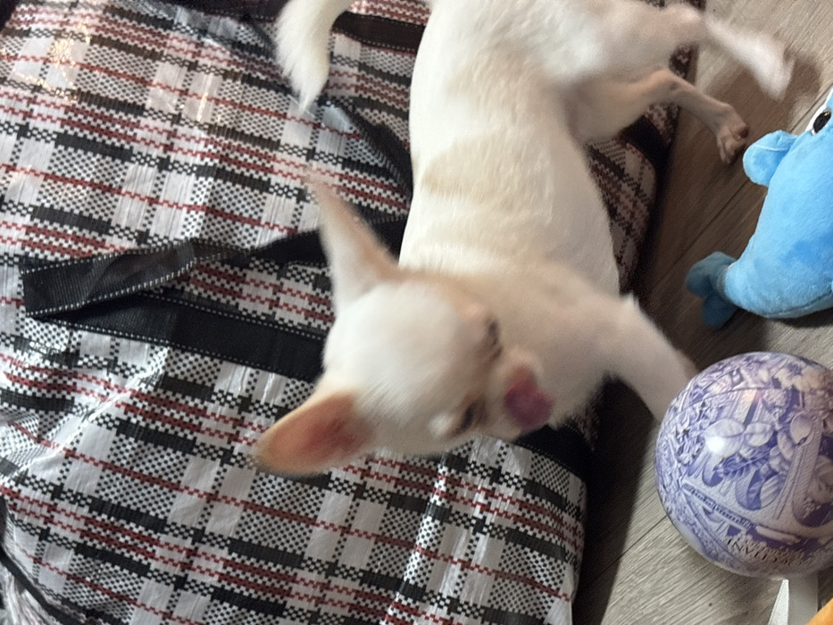 - "A cream-colored Chihuahua sprawls on a black, white, and red plaid bag" by FM-08PzB2, licensed under CC BY 4.0