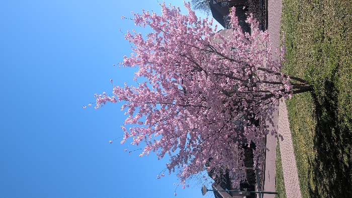 - "The image displays a full-frame view of a deciduous tree in peak bloom, laden with numerous light pink blossoms, situated on a patch of green grass" by FM-btFon2, licensed under CC BY 4.0