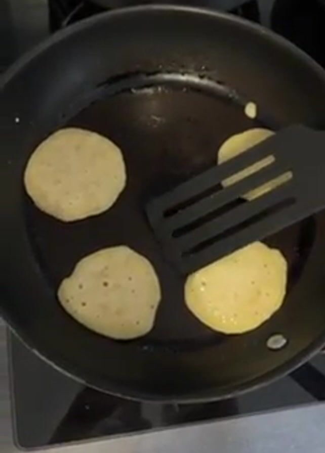 - "four small pancakes being cooked in a black frying pan on a stovetop" by FM-qvTDD3, licensed under CC BY 4.0