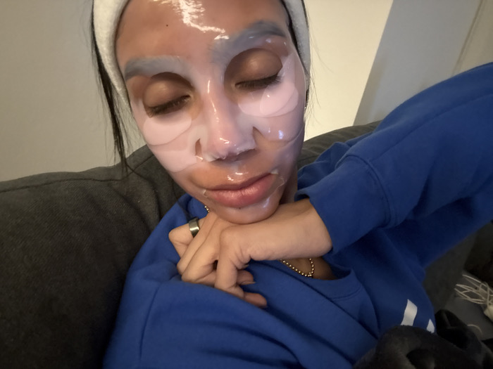 - "A person with a sheet mask on their face rests on a couch" by FM-rnhVl2, licensed under CC BY 4.0