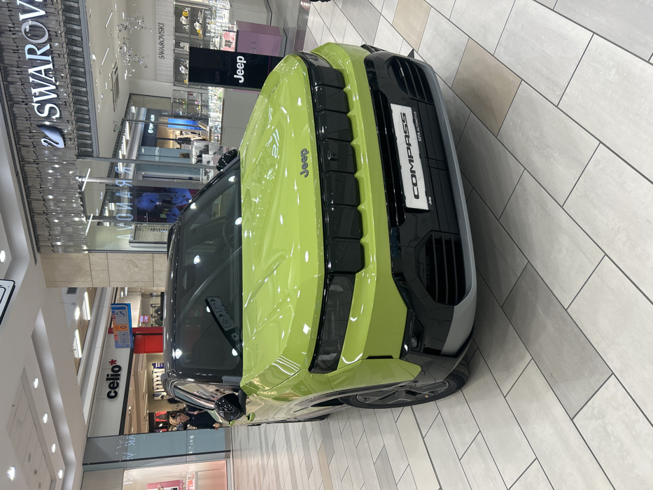 - "An indoor shopping mall in Sofia, Bulgaria, showcases a lime-green and black Jeep Compass SUV on a light-colored tiled floor" by FM-MxY173, licensed under CC BY 4.0