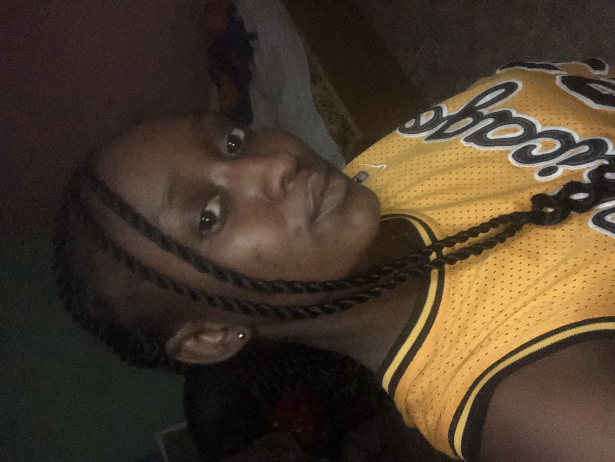 A close-up photograph taken in Sabon Gari Nassarawa, Nigeria, captures a female individual from the chest up, positioned slightly off-center. She has dark skin and multiple dark, twisted braids, with some strands draped over her left shoulder and chest. A small, spherical silver stud earring is present in her left earlobe. She is wearing a yellow, mesh-fabric sleeveless sports jersey featuring black and yellow striped trim on the collar and armholes. The word "Chicago" is emblazoned in white script with a black outline across the front of the jersey. Her eyes are directed slightly to the viewer's right, maintaining a neutral facial expression. The background is dark, out of focus, and lacks distinct features, consistent with an indoor setting under dim lighting conditions.