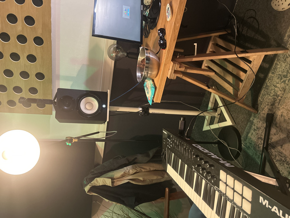 - "In a music production room located in Pantin, France, a corner workstation is illuminated by a prominent overhead circular light" by FM-W0HPg2, licensed under CC BY 4.0