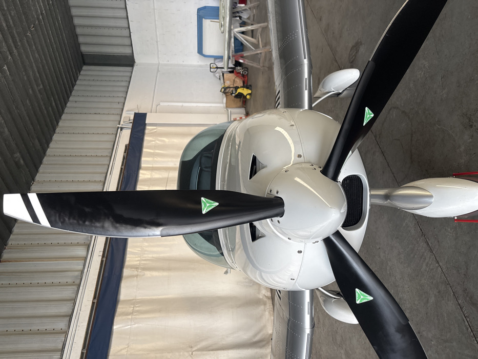 - "A white, single-engine, three-blade propeller aircraft is centrally positioned in a hangar at Toussus-le-Noble, France, viewed from a slightly elevated frontal perspective" by FM-0FokE2, licensed under CC BY 4.0
