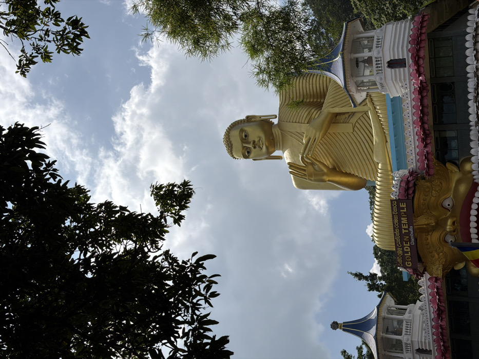 - "A monumental golden Buddha statue is centrally positioned against a partially cloudy blue sky, situated at the Golden Temple in Dambulla, Sri Lanka" by FM-Y4jCb2, licensed under CC BY 4.0