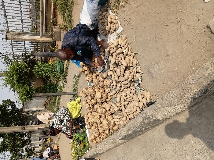 The image portrays an outdoor roadside market scene in Shangisha, Nigeria