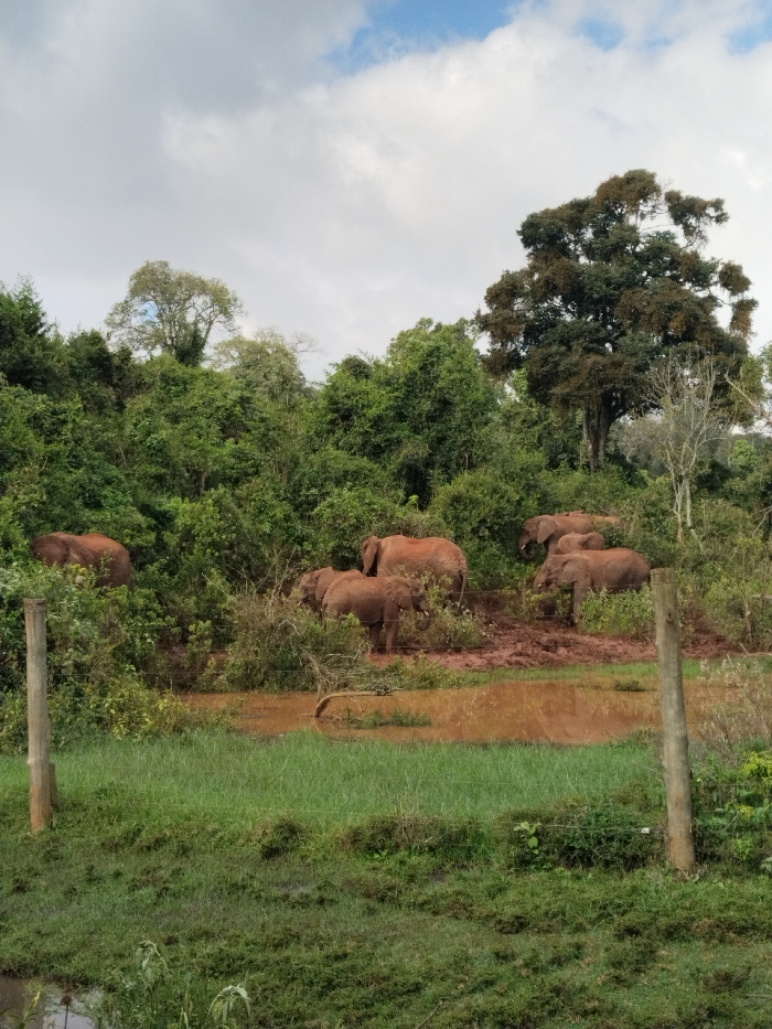 - "A herd of elephants, their hides appearing reddish-brown, gather near a muddy watering hole" by FM-KDvS93, licensed under CC BY 4.0