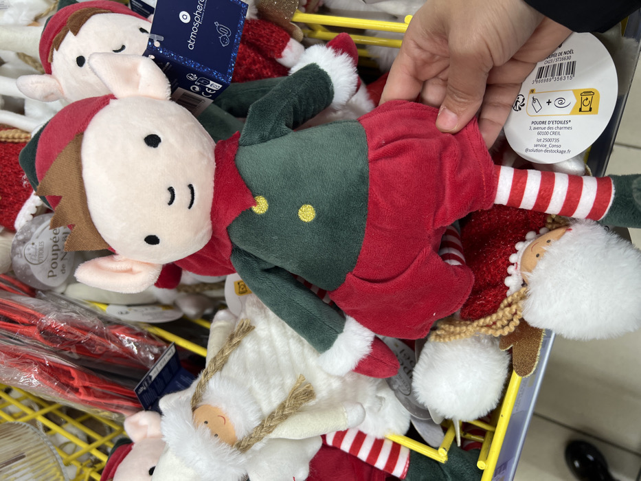 The image depicts a close-up scene within a retail store in Mondeville, France, specifically a section displaying seasonal items