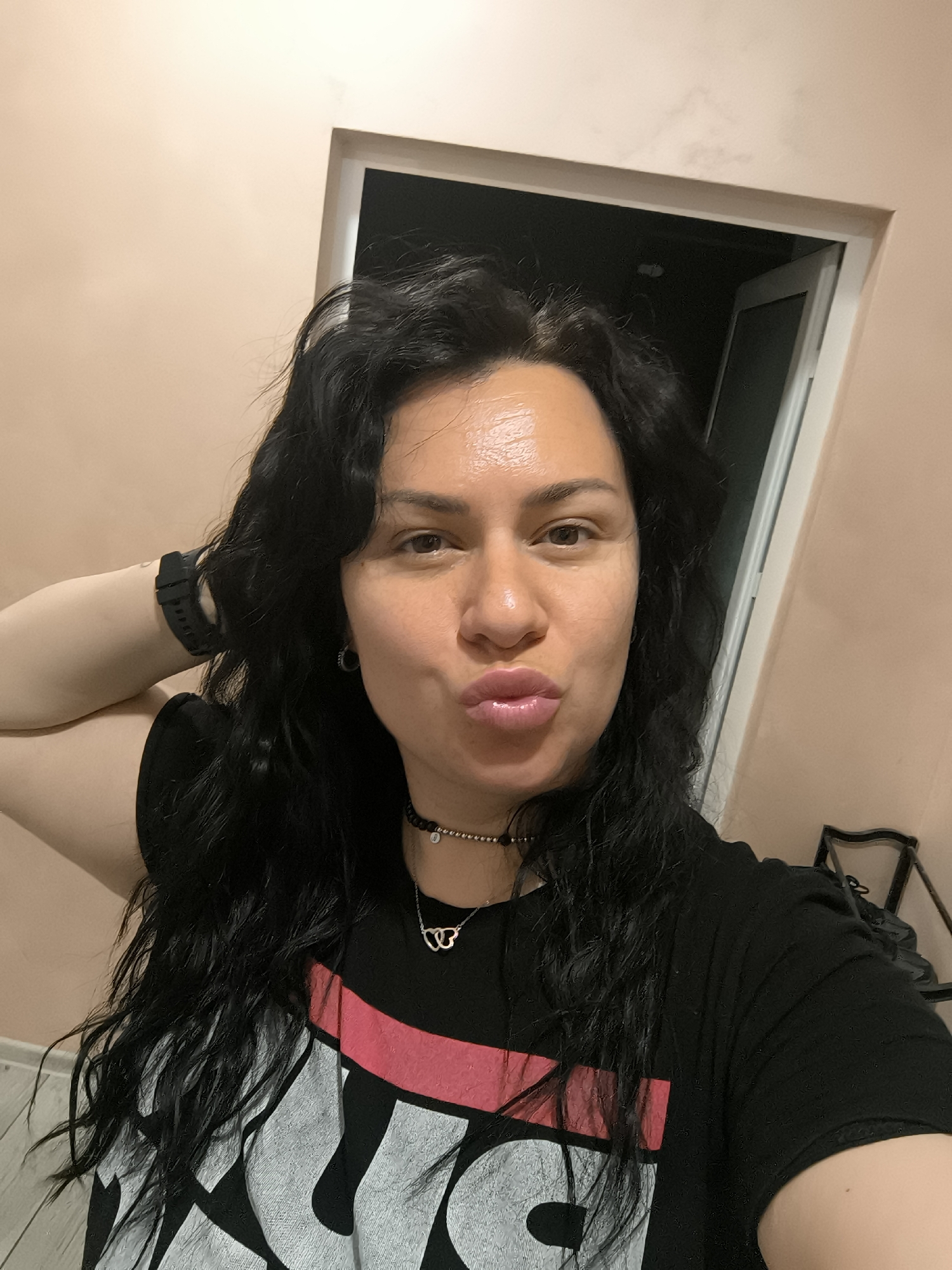 - "A woman with dark hair and a black t-shirt is posing for a selfie in what appears to be an indoor setting" by FM-pKOxt2, licensed under CC BY 4.0