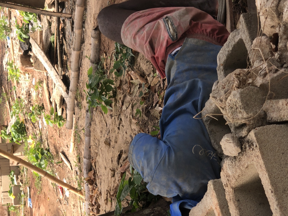 An individual is observed lying on their left side on sandy-dirt ground within an outdoor environment in Alor, Nigeria