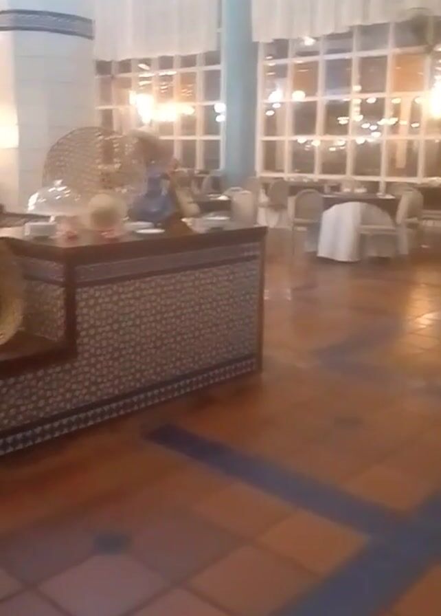 The video appears to be taken indoors, possibly in a hotel or restaurant setting