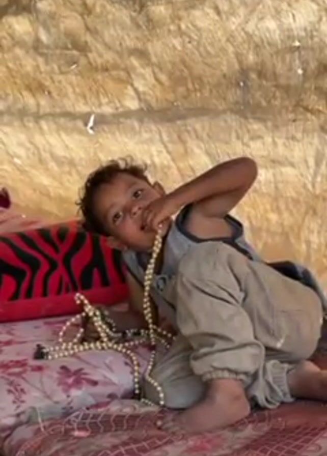 - "A young boy with curly hair, wearing a grey tank top and khaki-colored pants, is lying on a bed inside a tent" by FM-PSI0J3, licensed under CC BY 4.0