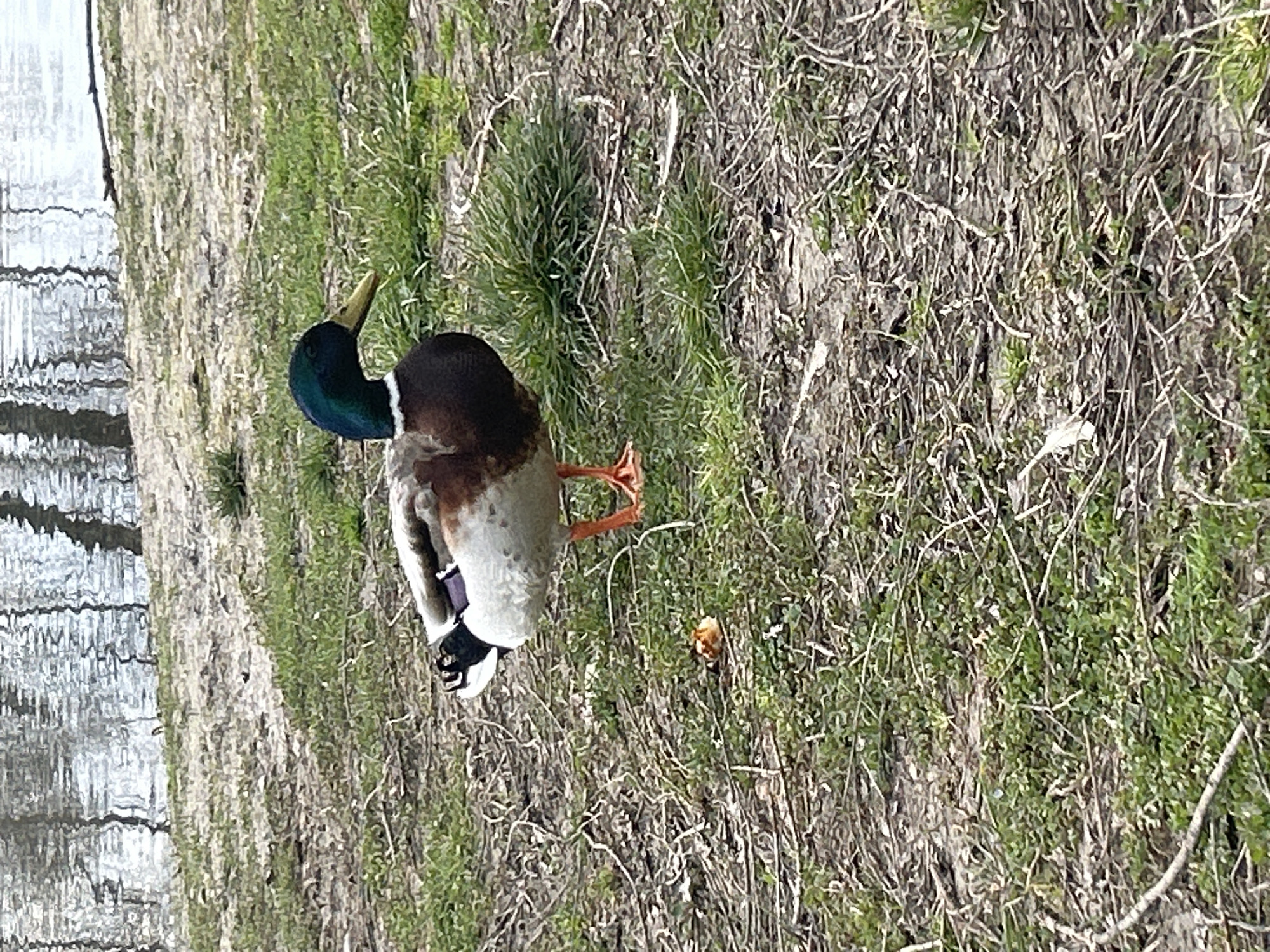 - "A single adult male mallard duck (Anas platyrhynchos) stands on a patch of uneven, sparsely vegetated ground in the city of Dolni Rakovets, Bulgaria" by FM-mpUWQ2, licensed under CC BY 4.0