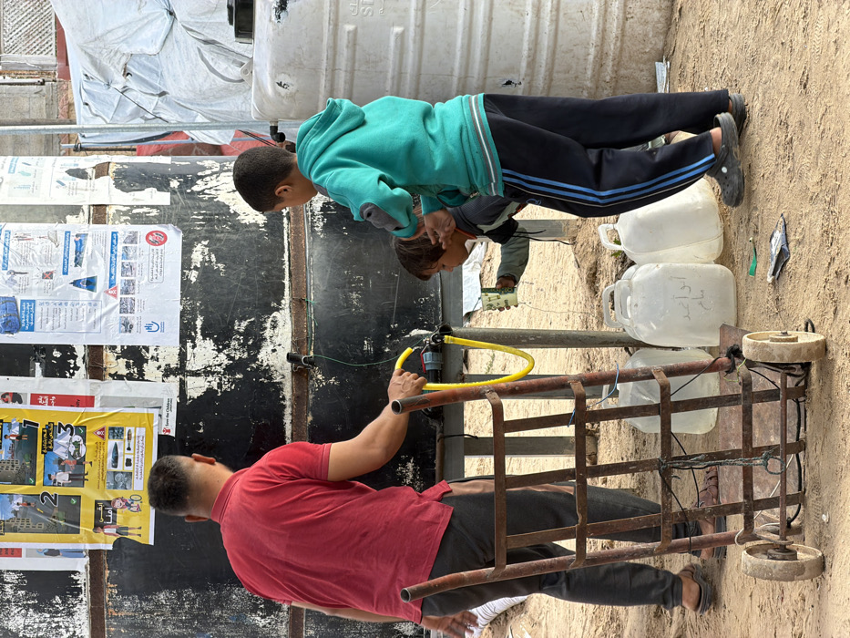 - "An outdoor scene in a-Zawayda, Palestinian Territory, features three individuals collecting water from a large, dark-colored plastic water tank" by FM-PSI0J3, licensed under CC BY 4.0