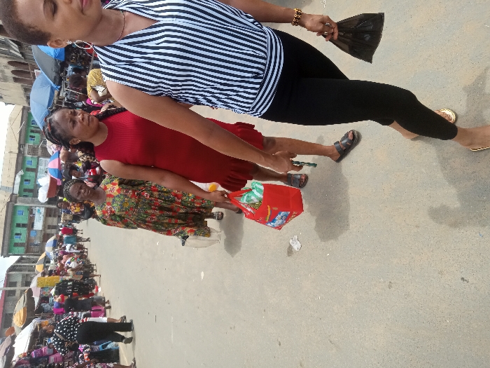 The image depicts a bustling outdoor market street in Umuode, Nigeria, under daylight conditions