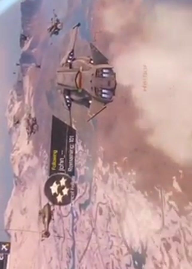 gameplay footage of a space exploration video game. The player is flying a white and gray spaceship over a desert landscape that fades into snow-covered mountains. In the top right of the screen, Japanese characters are visible. A black box on the left side of the screen indicates the player is following "john__" and the remaining number is counting down from 101. Other spaceships are visible in the sky.