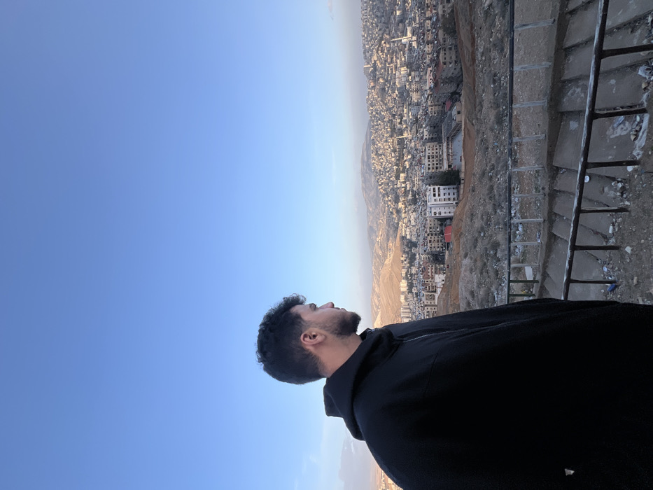 - "A male individual stands on an elevated, barren hillside overlooking the city of Qudsaiya, Syria" by FM-NiDCC3, licensed under CC BY 4.0